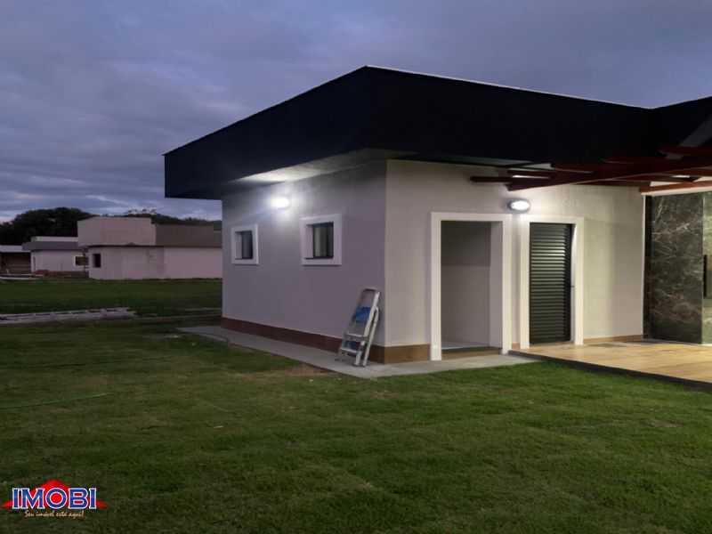 Casa linear em condomínio, 3 qtos sendo 1 suite, varanda, sala, bh soc, coz, a sv, garagem, área gourmet com bh. Excelente acabamento. Estrutura de lazer no condomínio.